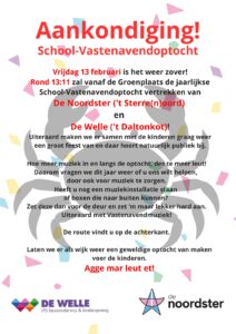In de groepen wordt al hard nagedacht en gewerkt aan dit motto en iedereen zal een klassenact neerzetten tijdens de optocht door de wijk op vrijdag 13 februari.
